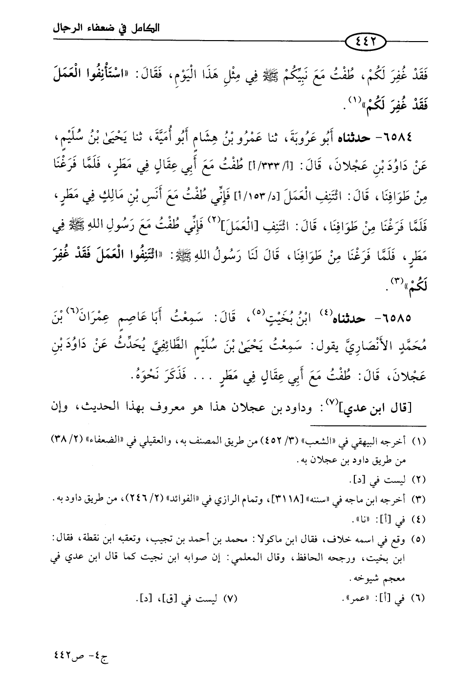 6584 - حَدثناهُ أَبو عَرُوبة، حَدثنا عَمرو بن هشام أَبو أمية، حَدثنا يحيى بن سليم، عن داود بن عجلان قال: طفت مع أبي عقال في مطر، فلما فرغنا من طوافنا، قال: ائتنف العمل، فإني طفت مع أنس بن مالك في مطر، فلما فرغنا من طوافنا قال: ائتنف العمل، فإني طفت مع رسول الله صَلى الله عَليه وسَلم في مطر، فلما فرغنا من طوافنا قال لنا رسول الله صَلى الله عَليه وسَلم: ائتنفوا العمل فقد غُفر لكم.