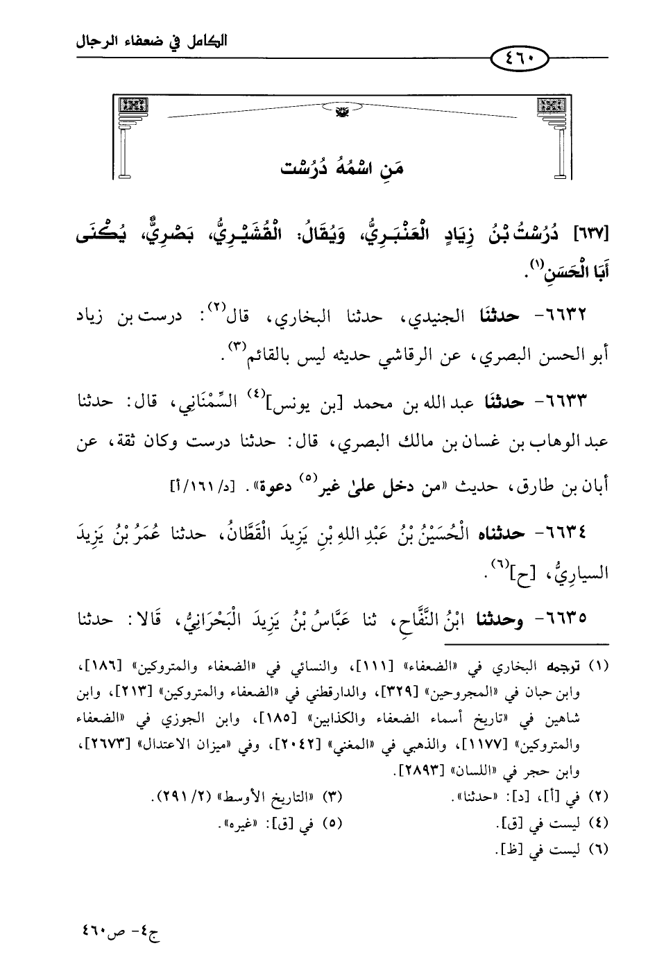 [637] درست بن زياد العنبري، ويقال: القشيري، بصري، يكْنَى أبا الحسن.