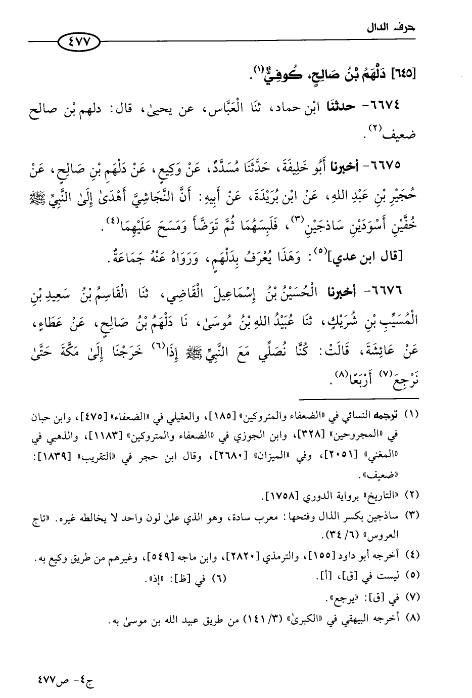 6674 - حَدثنا ابن حماد، حَدثنا العباس، عن يحيى، قال: دلهم بن صالح ضعيف.