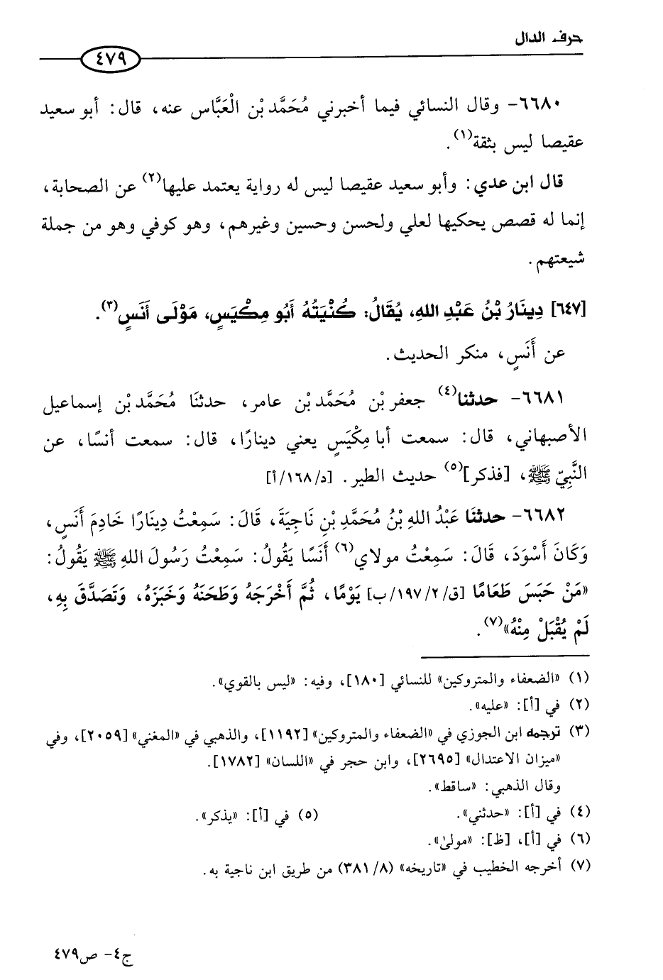 [647] دينار بن عَبد الله، يقال كنيته: أَبو مِكْيس، مولى أنس.