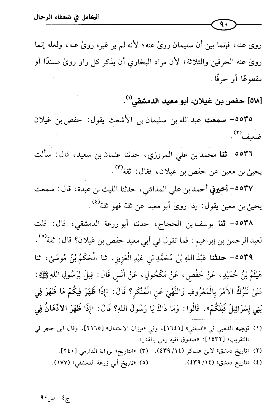 5538 - حَدثنا يوسف بن الحجاج، حَدثنا أبُو زُرْعَة الدمشقي، قال: قلتُ لعبد الرحمن بن إبراهيم: فما تقول في أبي معيد حفص بن غيلان؟ قال: ثقةٌ.