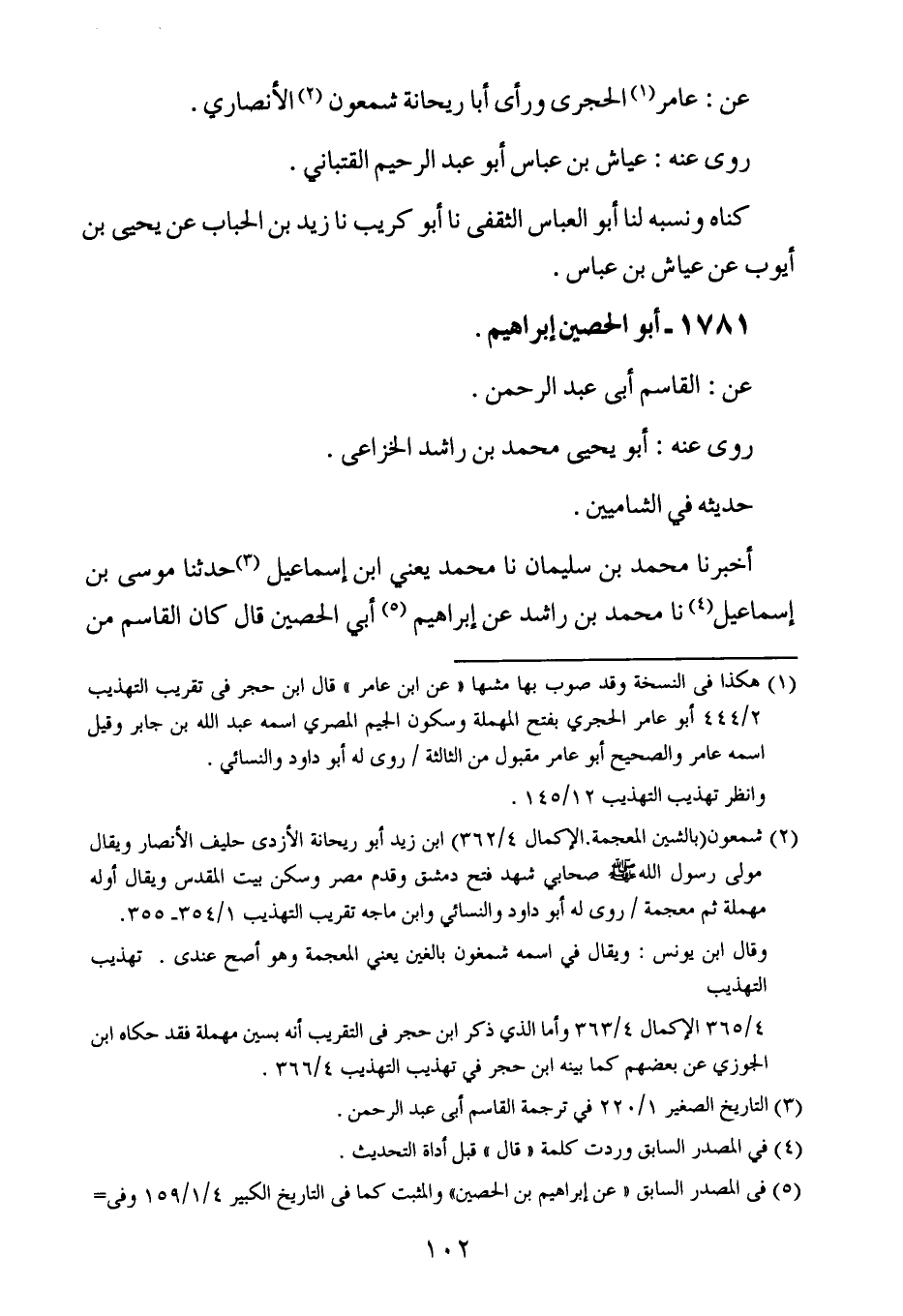 أخبرنا محمد بن سُليمان ، حَدَّثنا محمد ، يَعنِي ابن إسماعيل حدثنا موسى بن إسماعيل ، حَدَّثنا محمد بن راشد عن إبراهيم أبي الحصين قال كان القاسم من فقهاء دمشق.