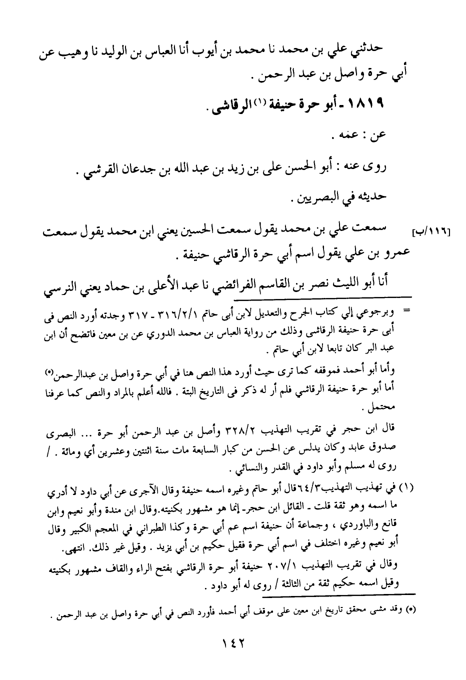 سمعت علي بن محمد يقول : سَمِعتُ الحسين ، يَعنِي ابن محمد يقول : سَمِعتُ عَمْرو بن علي يقول اسم أبي حرة الرقاشي حنيفة.