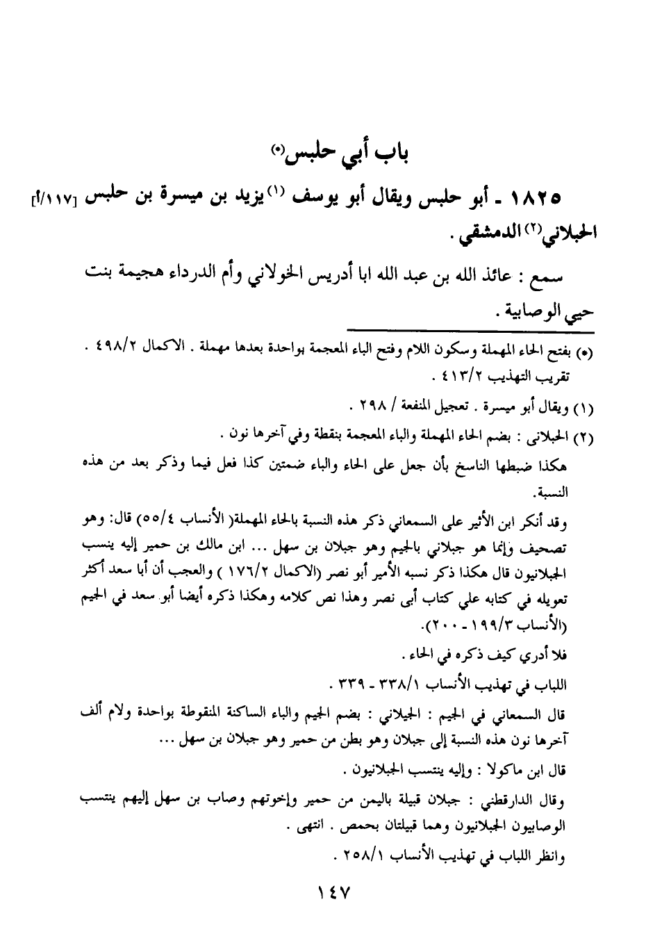 1825- أبو حلبس ، وَيُقَال : أبو يوسف يزيد بن ميسرة بن حلبس الحبلاني الدمشقي.