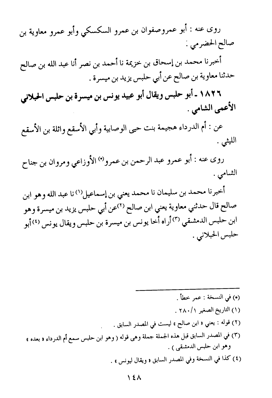 1826- أبو حلبس ، وَيُقَال : أبو عبيدة يونس بن ميسرة بن حلبس الحبلاني الأعمي الشامي.