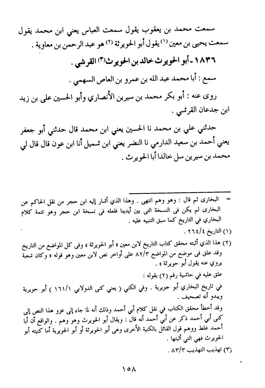 حدثني علي بن محمد ، حَدَّثنا الحسين ، يَعنِي ابن محمد ، قال : حَدَّثني أبو جعفر ، يَعني أحمد بن سعيد الدارمي ، حَدَّثنا النضر ، يَعنِي ابن شميل أخبرنا ابن عون ، قال : قال لي محمد بن سيرين سل خالدا أبا الحويرث.