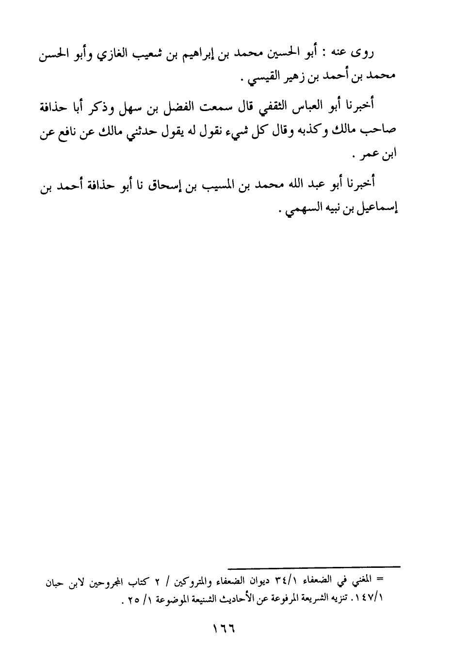 أخبرنا أبو العباس الثقفي ، قال : سَمِعتُ الفضل بن سهل وذكر أبا حذافة صاحب مالك وكذبه وقال كل شيء نقول له يقول حدثني مالك عن نافع عن ابن عمر.