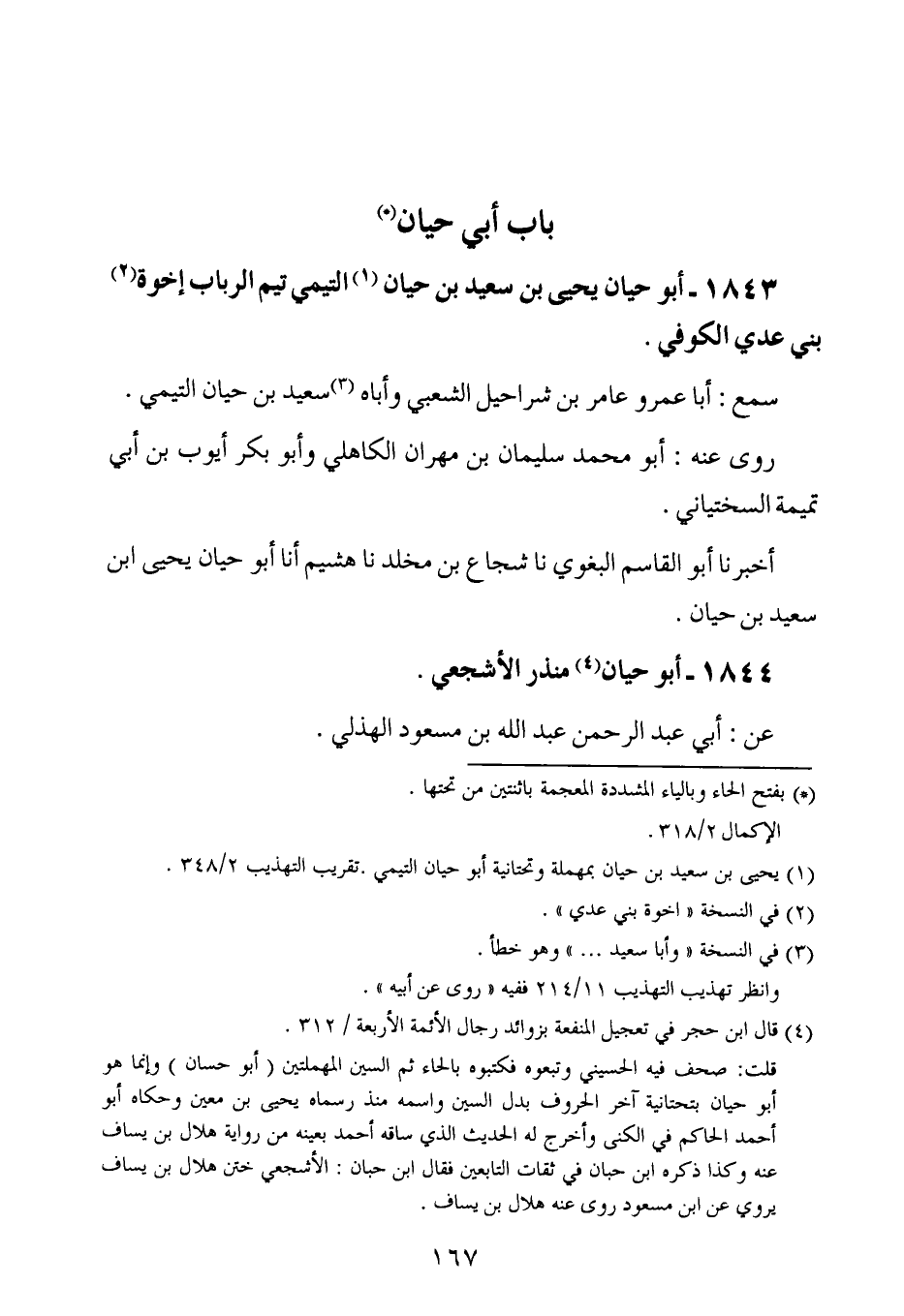 1843- أبو حيان يحيى بن سعيد بن حيان التيمي تيم الرباب إخوة بني عدي الكوفي.