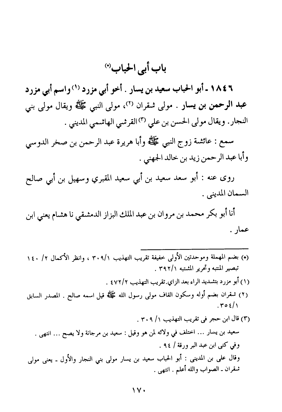، حَدَّثنا حاتم ، يَعنِي ابن إسماعيل ، حَدَّثنا معاوية بن أبي مزرد مولى بني هاشم ، قال : حَدَّثني عمي أبو الحباب سعيد بن يسار.