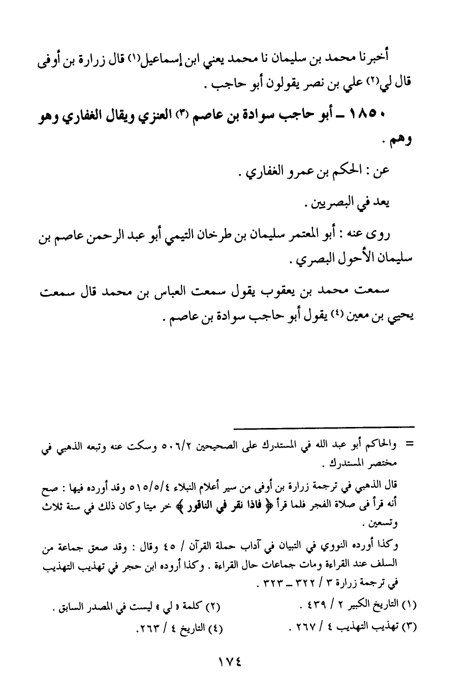سمعت محمد بن يعقوب يقول : سَمِعتُ العباس بن محمد ، قال : سَمِعتُ يحيى بن معين يقول أبو حاجب سوادة بن عاصم.