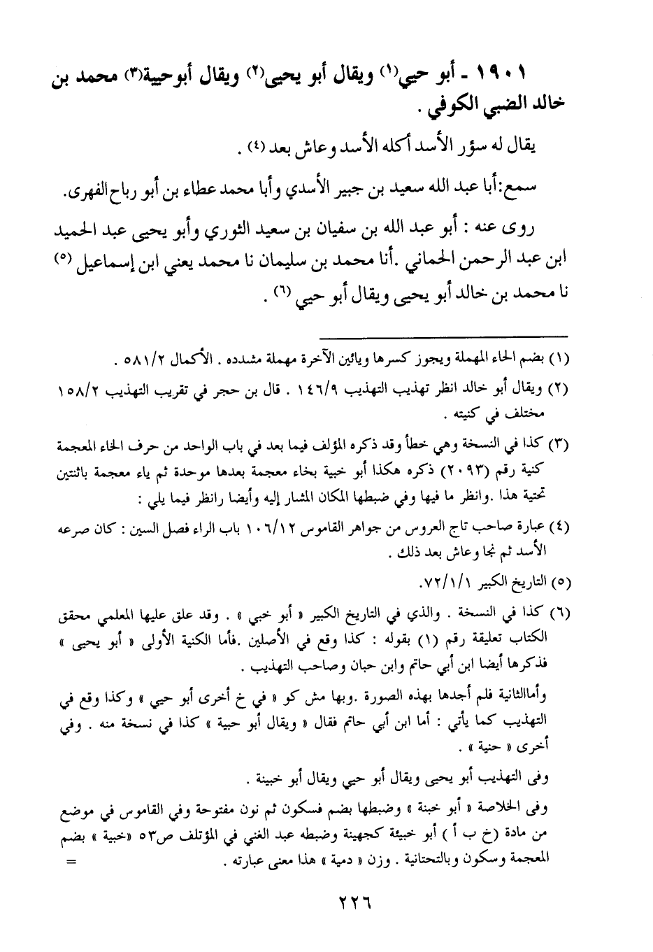 1901- أبو حيي ، وَيُقَال : أبو يحيى ، وَيُقَال : أبو حية محمد بن خالد الضبي الكوفي.