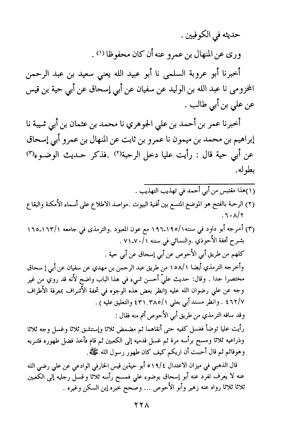 أخبرنا عُمَر بن أحمد بن علي الجوهري ، حَدَّثنا محمد بن عثمان بن أبي شيبة ، حَدَّثنا إبراهيم بن محمد بن ميمون ، حَدَّثنا عَمْرو بن ثابت عن المنهال بن عَمْرو أبي إسحاق عن أبي حية قال : رأيت عليا دخل الرحبة فذكر حديث الوضوء بطوله.