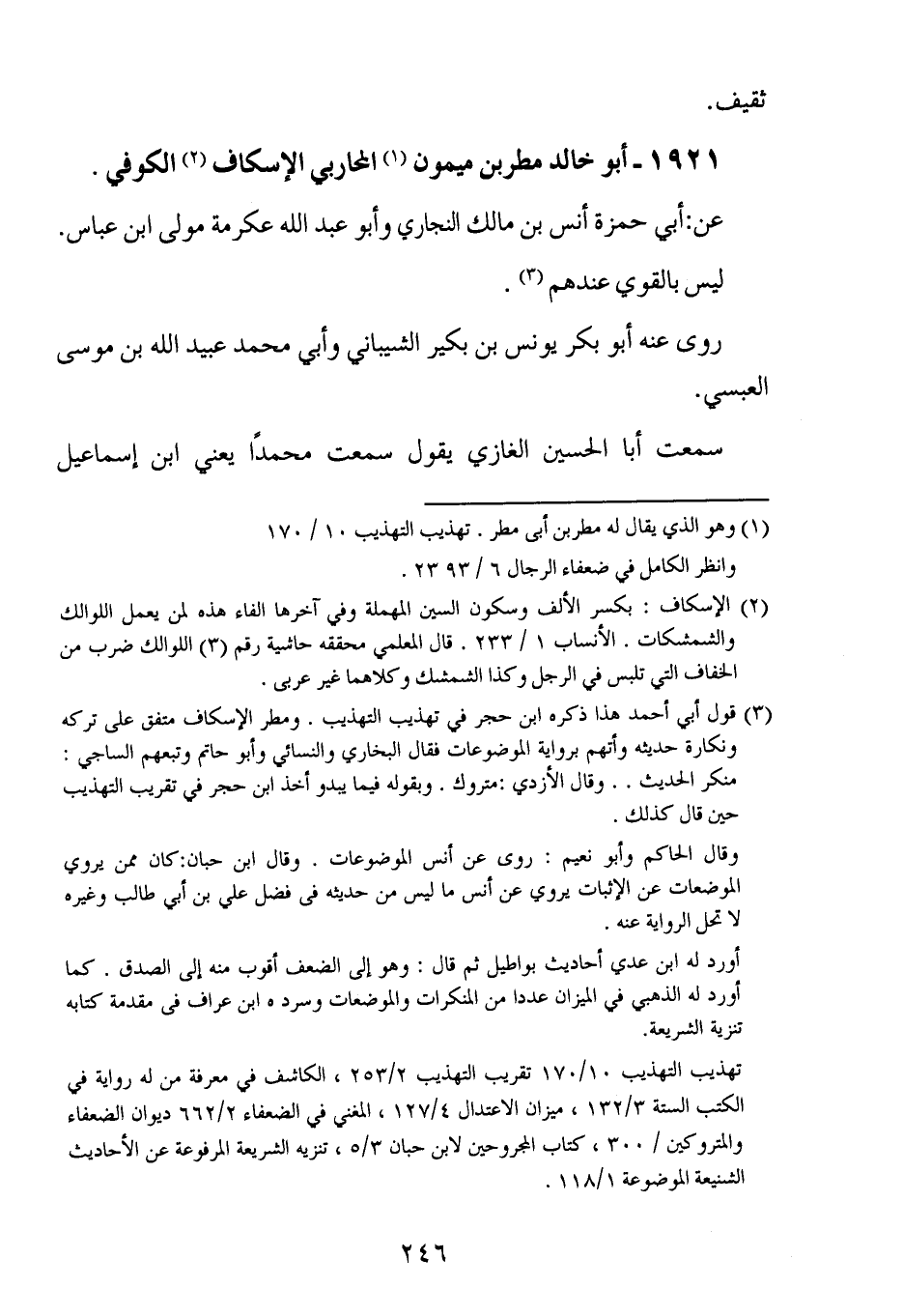 1921- أبو خالد مطر بن ميمون المحاربي الإسكاف الكوفي.