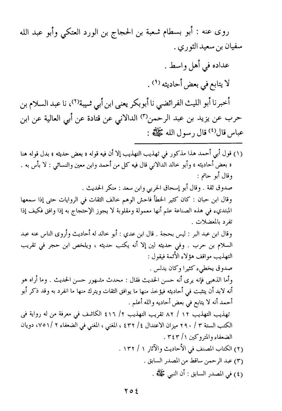 أخبرنا أبو الليث الفرائضي ، حَدَّثنا أبو بكر ، يَعنِي ابن أبي شيبة ، حَدَّثنا عبد السلام بن حرب عن يزيد بن عبد الرحمن الدالاني عن قتادة عن أبي العالية عن ابن عباس ، قال : قال رسول الله صلى الله عليه وسلم : ليس على من نام ساجدا وضوء حتى يضطجع فإنه إذا اضطجع استرخت مفاصله.