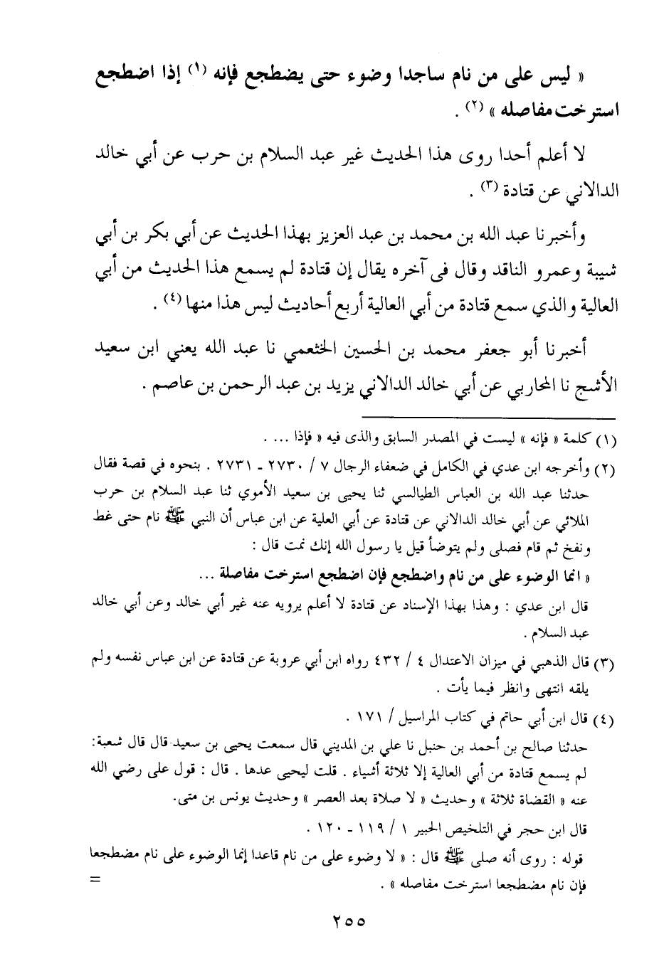 وأخبرنا عبد الله بن محمد بن عبد العزيز بهذا الحديث عن أبي بكر بن أبي شيبة وعمرو الناقد وقال في آخره يقال إن قتادة لم يسمع هذا الحديث من أبي العالية والذي سمع قتادة من أبي العالية أربع أحاديث ليس هذا منها.