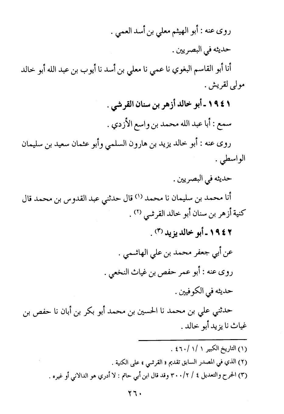 أَخْبَرنا محمد بن سُليمان ، حَدَّثنا محمد ، قال : حَدَّثني عبد القدوس بن محمد قال كنية أزهر بن سنان أبو خالد القرشي.