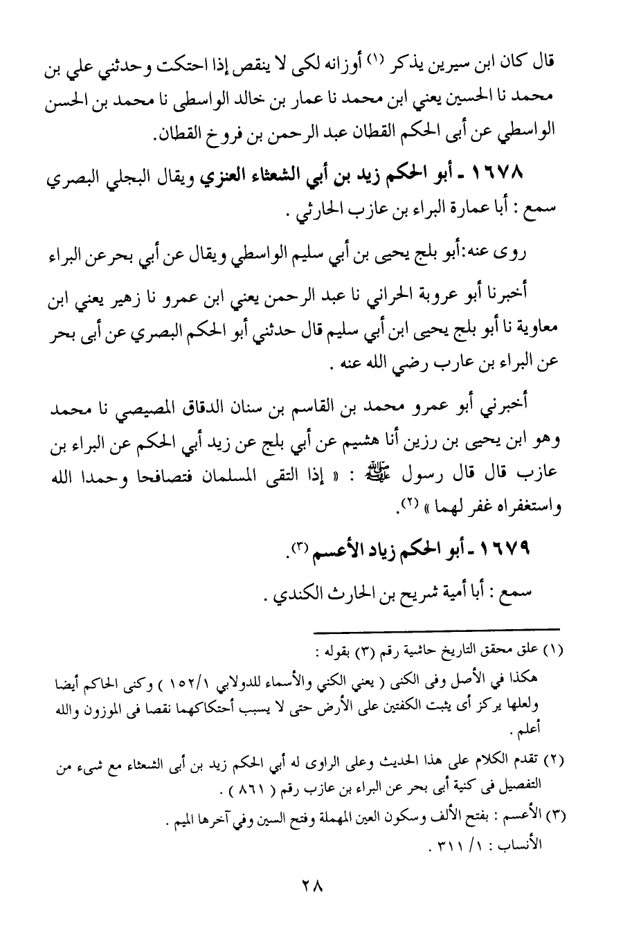 1678- أبو الحكم زيد بن أبي الشعثاء العنزي ، وَيُقَال : البجلي البصري سمع أبا عمارة البراء بن عازب الحارثي.