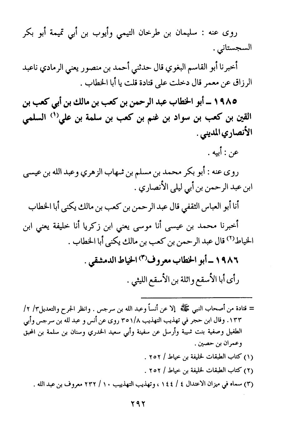1985- أبو الخطاب عبد الرحمن بن كعب بن مالك بن أبي كعب بن القين بن كعب بن سواد بن غنم بن كعب بن سلمة بن علي السلمي الأنصاري المديني.