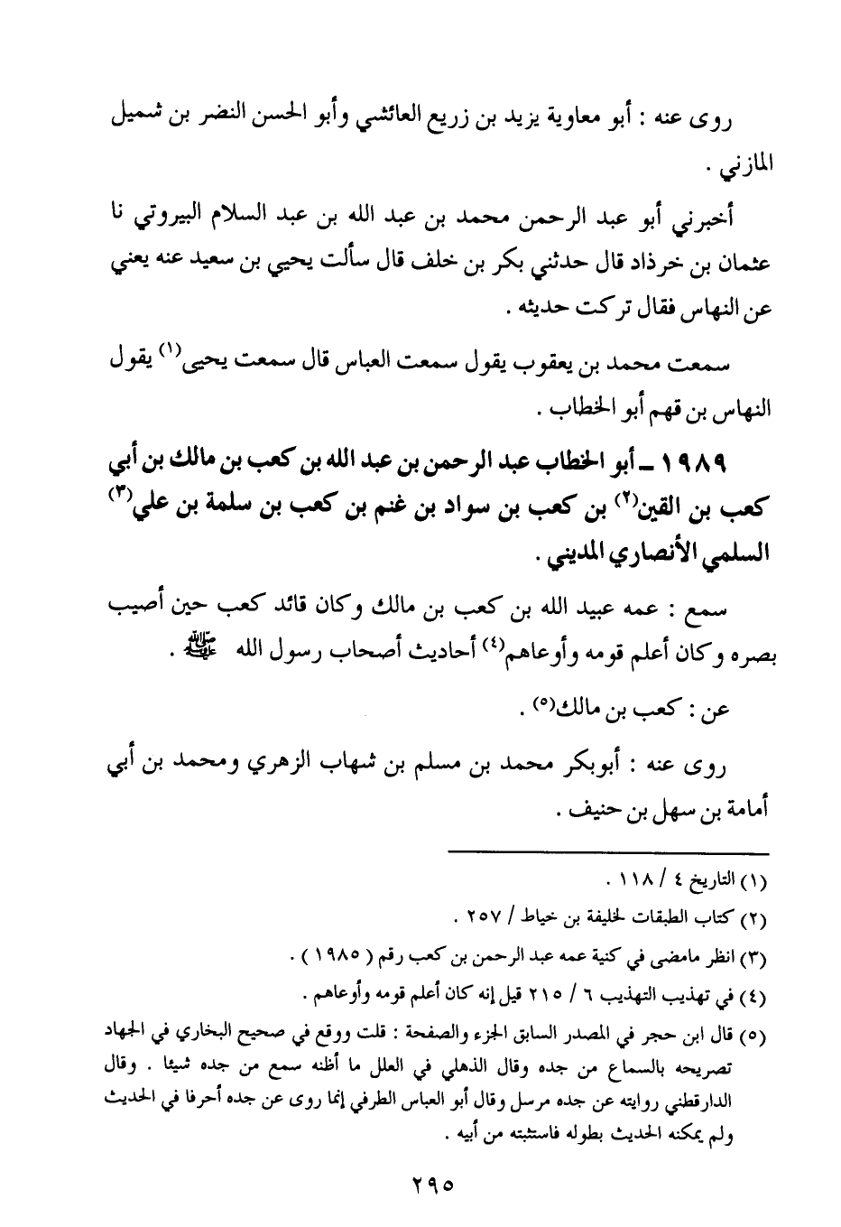 1989- أبو الخطاب عبد الرحمن بن عبد الله بن كعب بن مالك بن أبي كعب بن القين بن كعب بن سواد بن غنم بن كعب بن سلمة بن علي السلمي الأنصاري المديني.