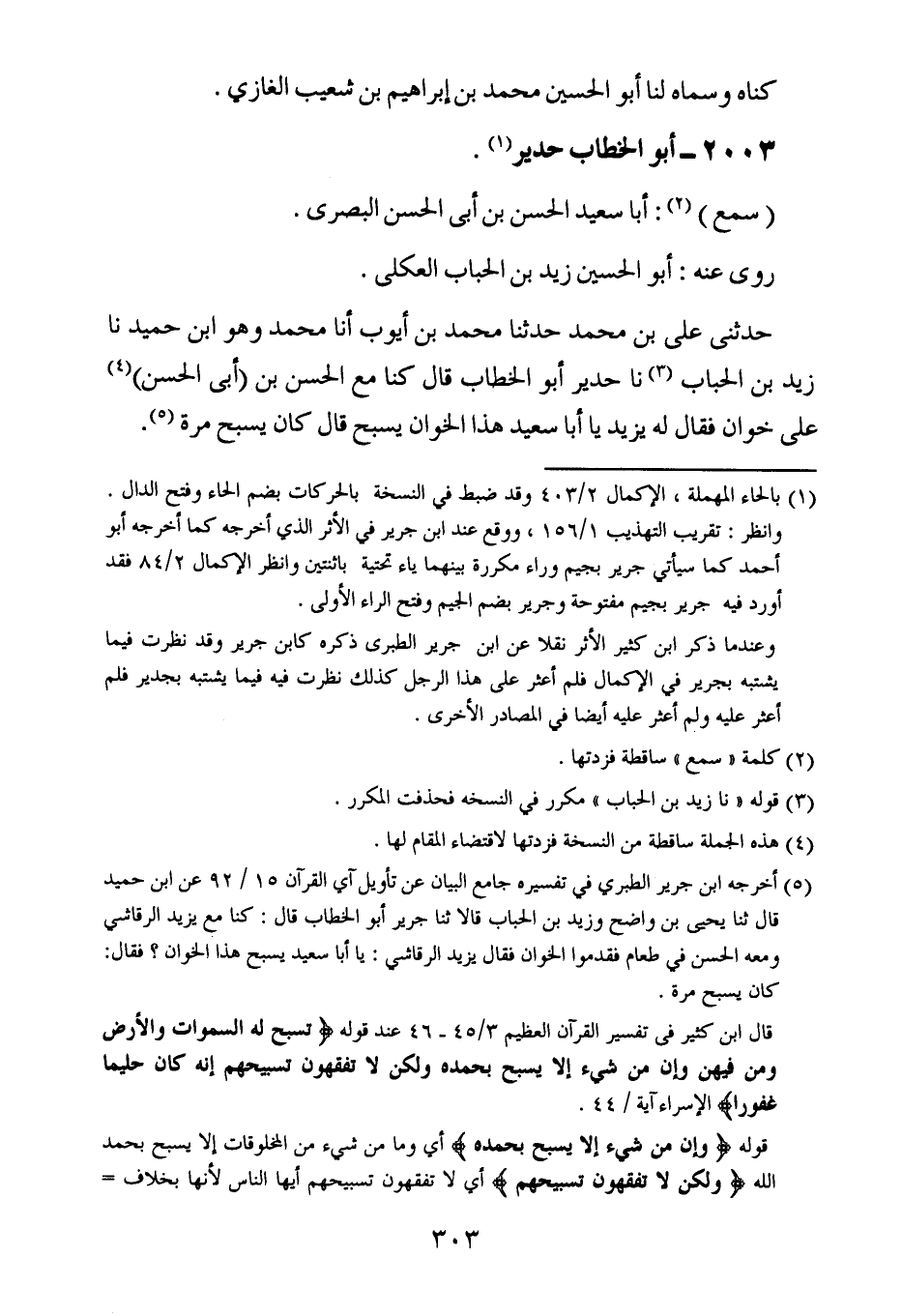 حدثني علي بن محمد حدثنا محمد بن أيوب أخبرنا محمد ، وَهُو ابن حميد ، حَدَّثنا زيد بن الحباب ، حَدَّثنا حدير أبو الخطاب قال كنا مع الحسن بن أبي الحسن على خوان فقال له يزيد ياأبا سعيد هذا الخوان يسبح قال كان يسبح مرة.
