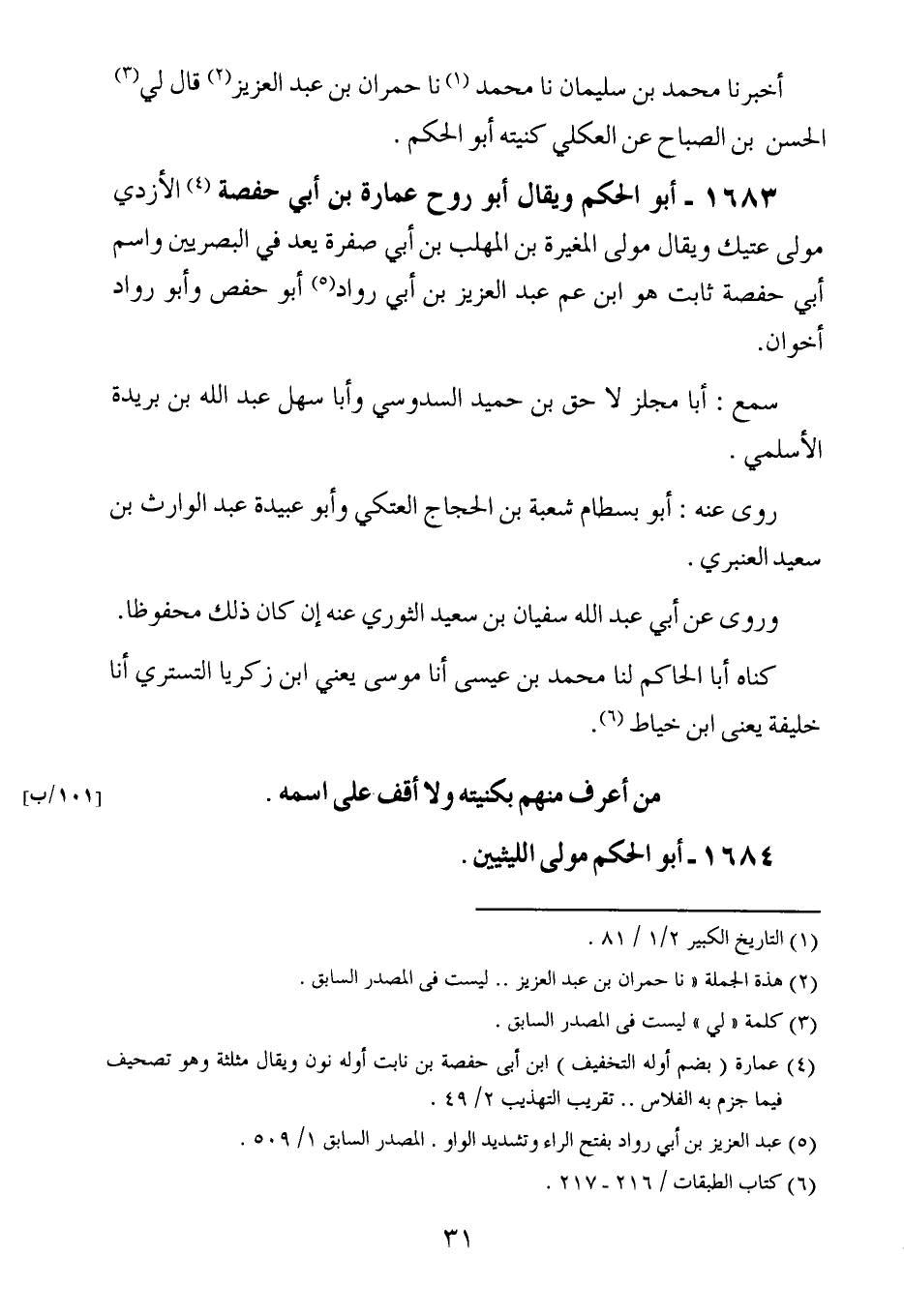 1683- أبو الحكم ، وَيُقَال : أبو روح عمارة بن أبي حفصة ، الأَزدِيّ مولى عتيك ، وَيُقَال : مولى المغيرة بن المهلب بن أبي صفرة.