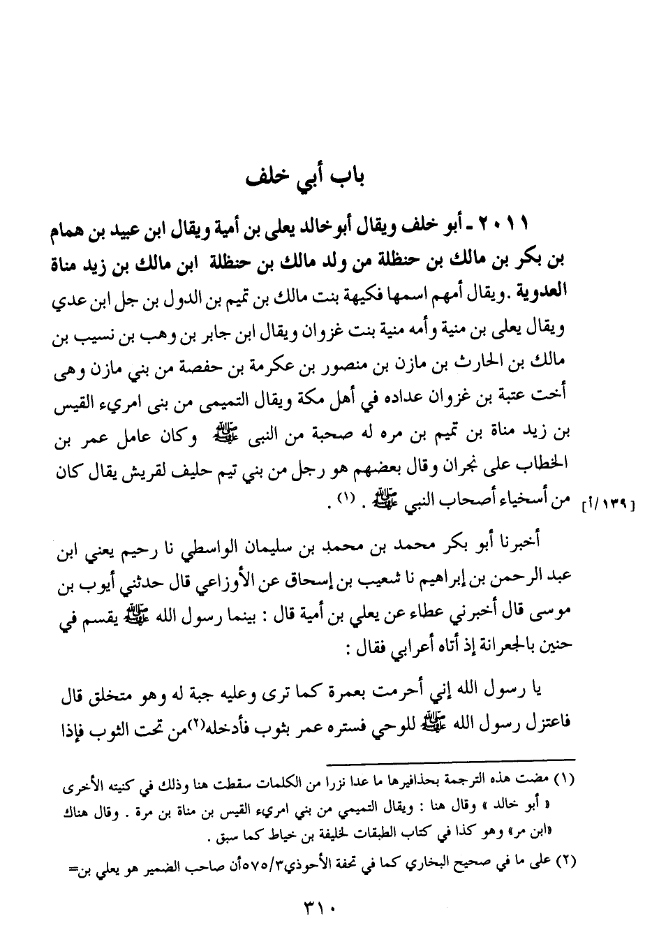 2011- أبو خلف ، وَيُقَال : أبو خالد يعلى بن أمية ، وَيُقَال : ابن عبيد بن همام بن بكر بن مالك بن حنظلة من ولد مالك بن حنظلة ابن مالك بن زيد مناة العدوية.