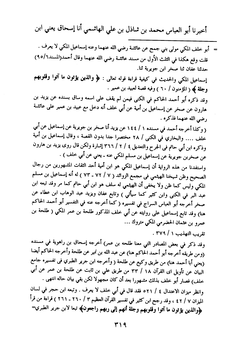 أخبرنا أبو العباس محمد بن شاذل بن علي الهاشمي أخبرنا إسحاق ، يَعنِي ابن إبراهيم الحنظلي أخبرنا ابن نمير عن طلحة بن عَمْرو الحضرمي عن أبي خلف.