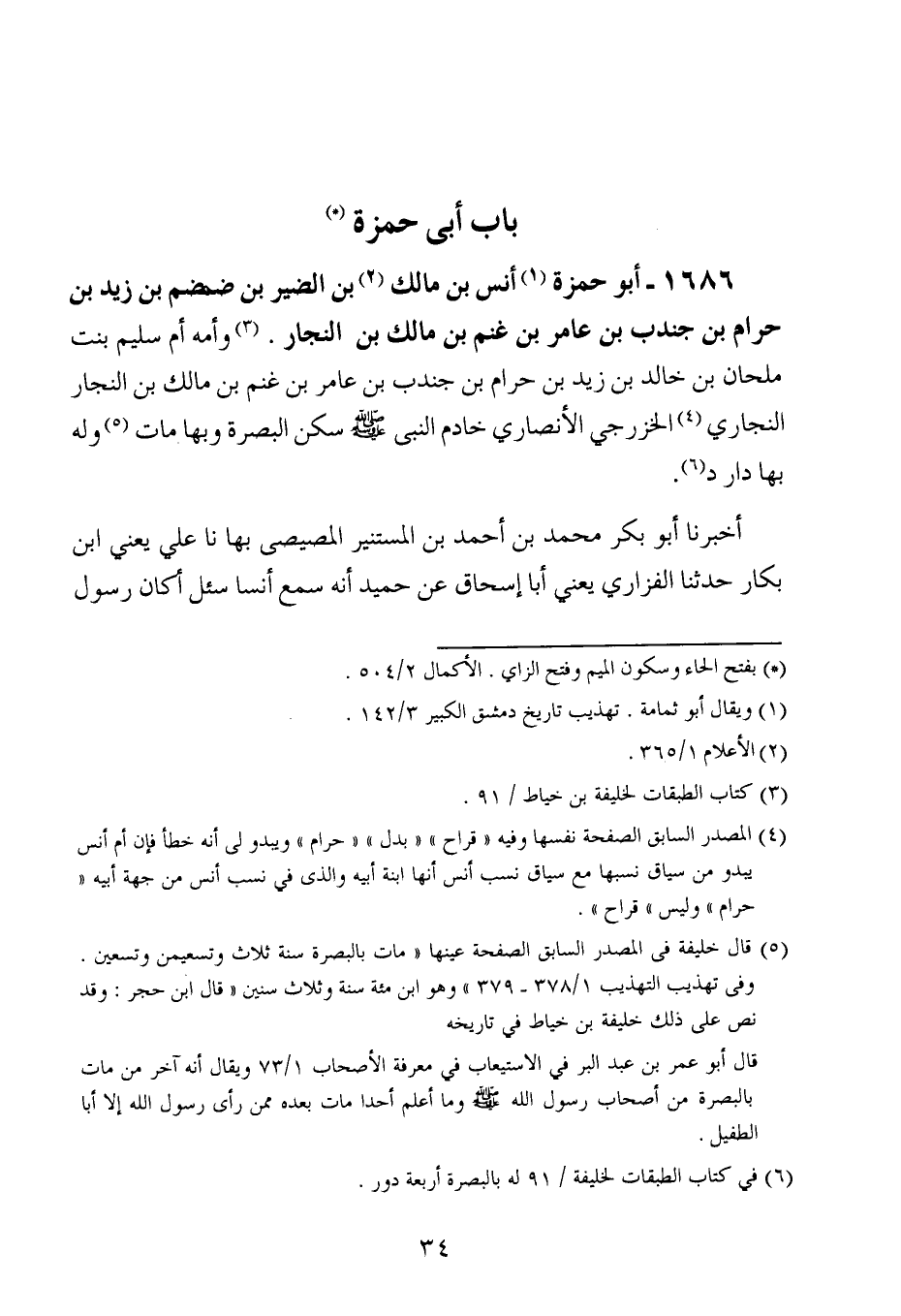 1686- أبو حمزة أنس بن مالك بن الضير بن ضمضم بن زيد بن حرام بن جندب بن عامر بن مالك بن الجار.