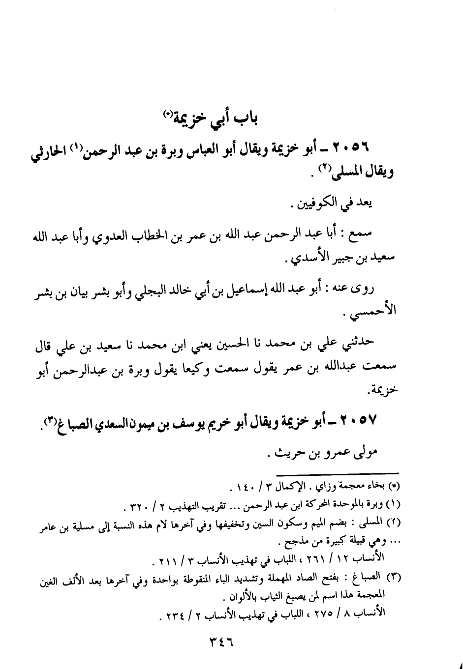 2056- أبو خزيمة ، وَيُقَال : أبو العباس وبرة بن عبد الرحمن الحارثي ، وَيُقَال : المسلى.
