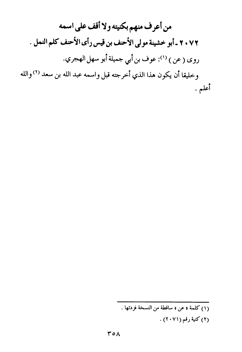 2072- أبو خشينة مولى الأحنف بن قيس رأى الأحنف كلم النمل.