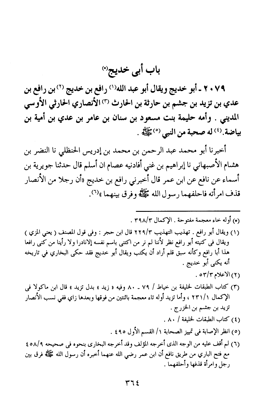 2079- أبو خديج ، وَيُقَال : أبو عبد الله رافع بن خديج بن رافع بن عدي بن تزيد بن جشم بن حارثة بن الحارث الأنصاري الحارثي الأوسي المديني.