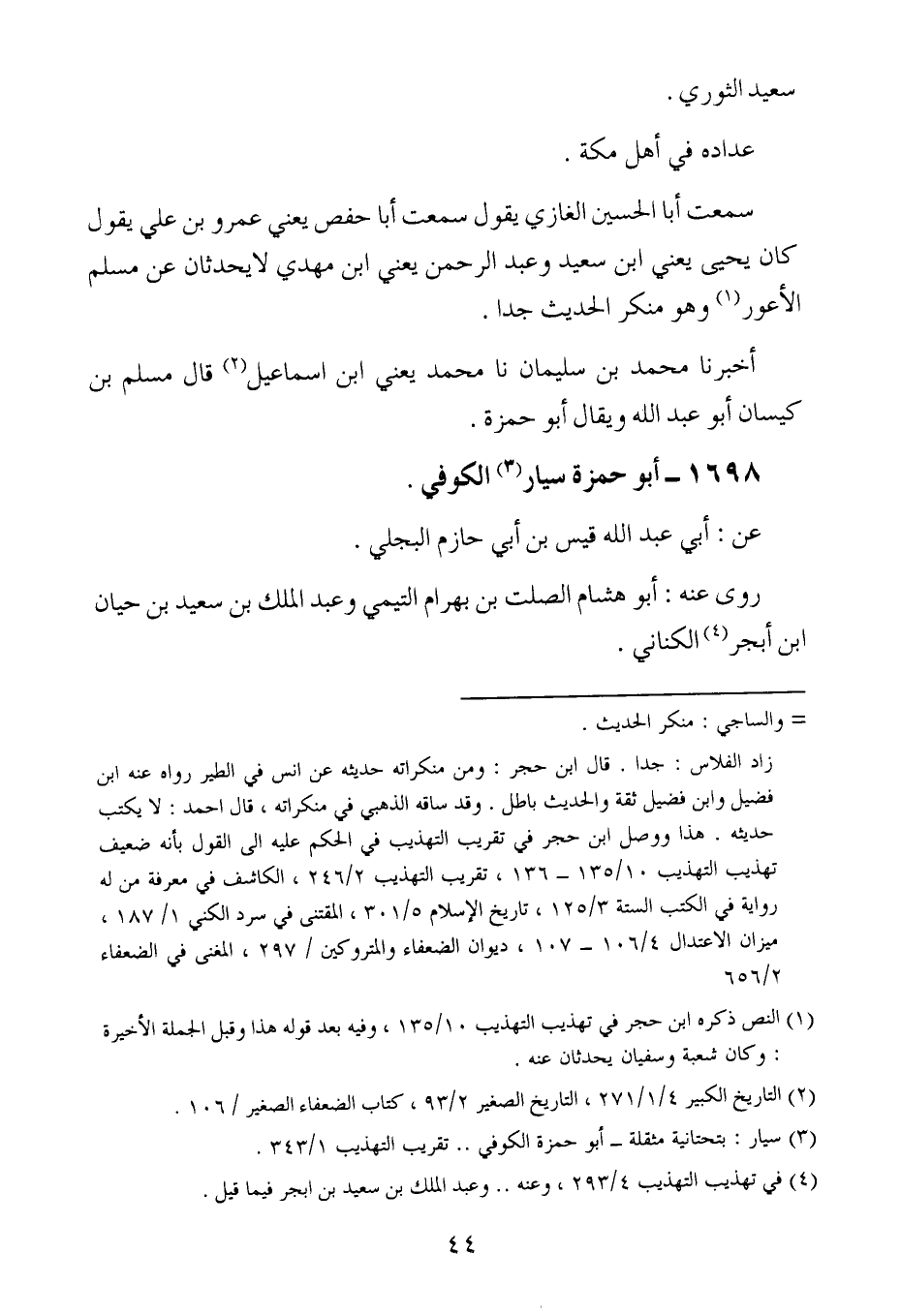 سمعت محمد بن يعقوب يقول : سَمِعتُ العباس ، يَعنِي ابن محمد ، قال : سَمِعتُ يحيى بن معين يقول سيار أبو حمزة كوفي وقد روى سيار أبو حمزة هذا عن قيس بن أبي حازم.