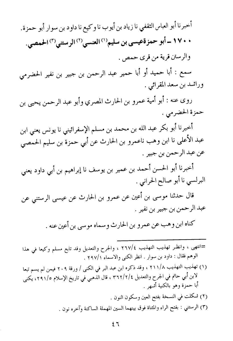 1700- أبو حمزة عيسى بن سليم العنسي الرستني الحمصي.