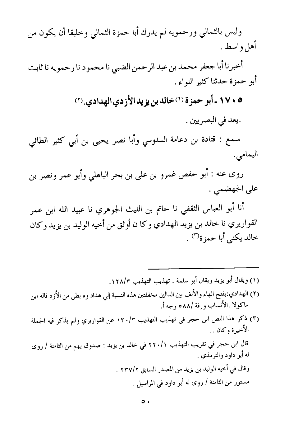 1705- أبو حمزة خالد بن يزيد ، الأَزدِيّ الهدادي.