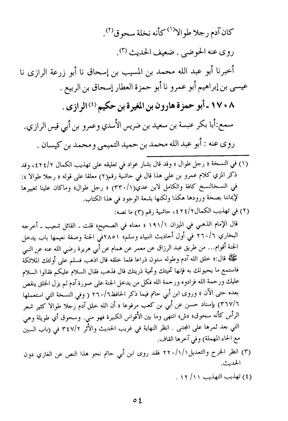 1708- أبو حمزة هارون بن المغيرة بن حكيم الرازي.