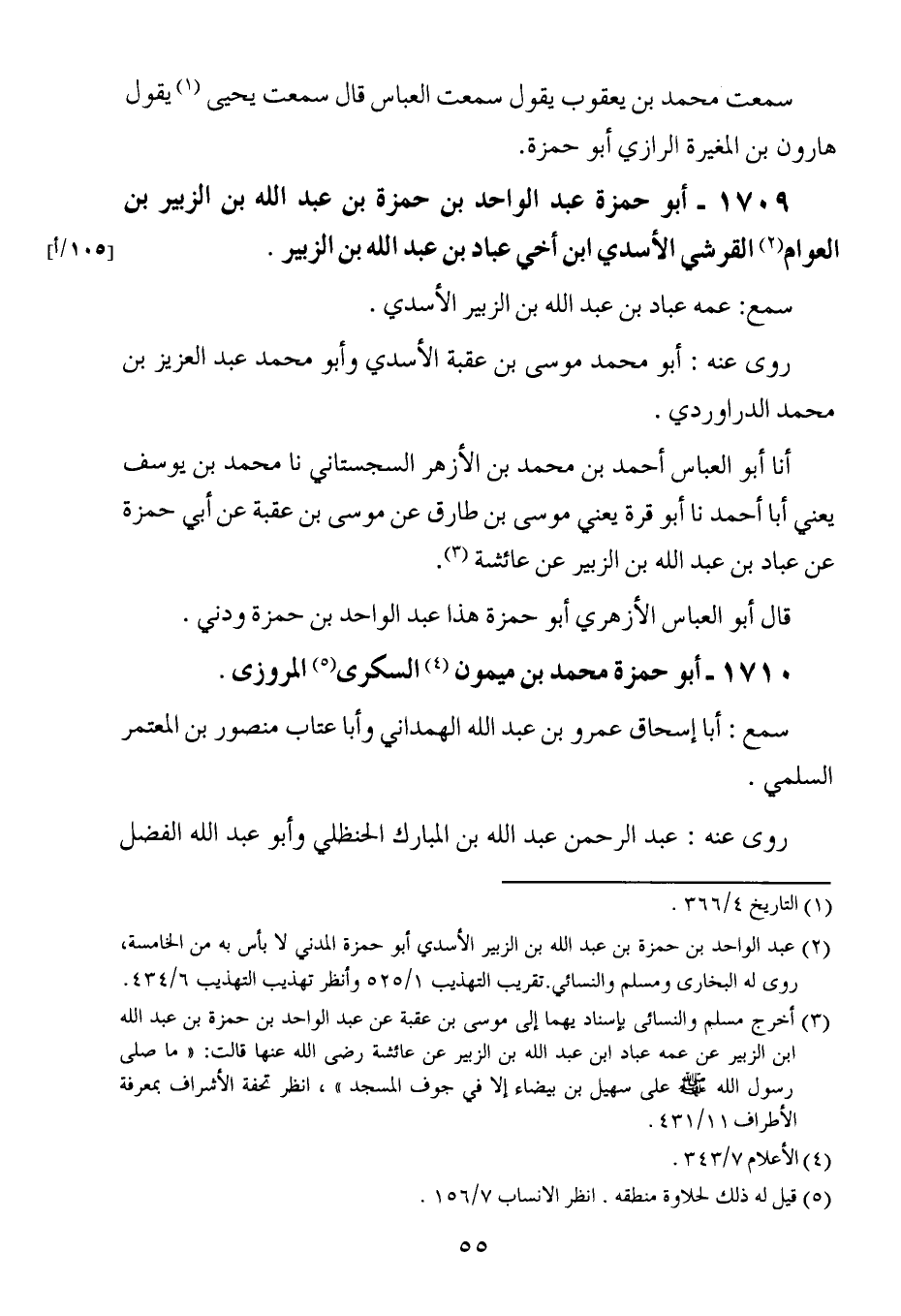 1709- أبو حمزة عبد الواحد بن حمزة بن عبد الله بن الزبير بن العوام القرشي الأسدي ابن أخي عباد بن عبد الله بن الزبير.