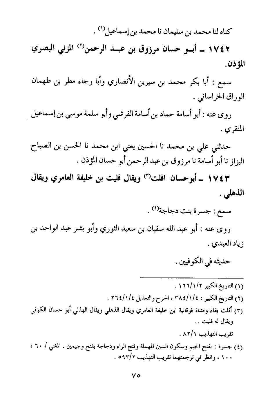 1742- أبو حسان مرزوق بن عبد الرحمن المزني البصري المؤذن.