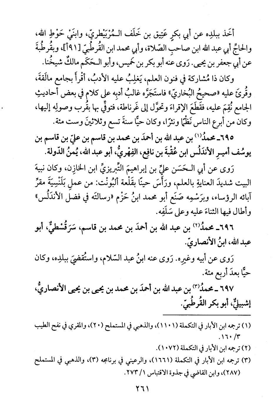 697 - محمدُ (¬3) بن عبد الله بن أحمدَ بن محمد بن يحيى بن يحيى الأنصاريُّ، إشبيليٌّ، أبو بكر القُرطُبيّ.