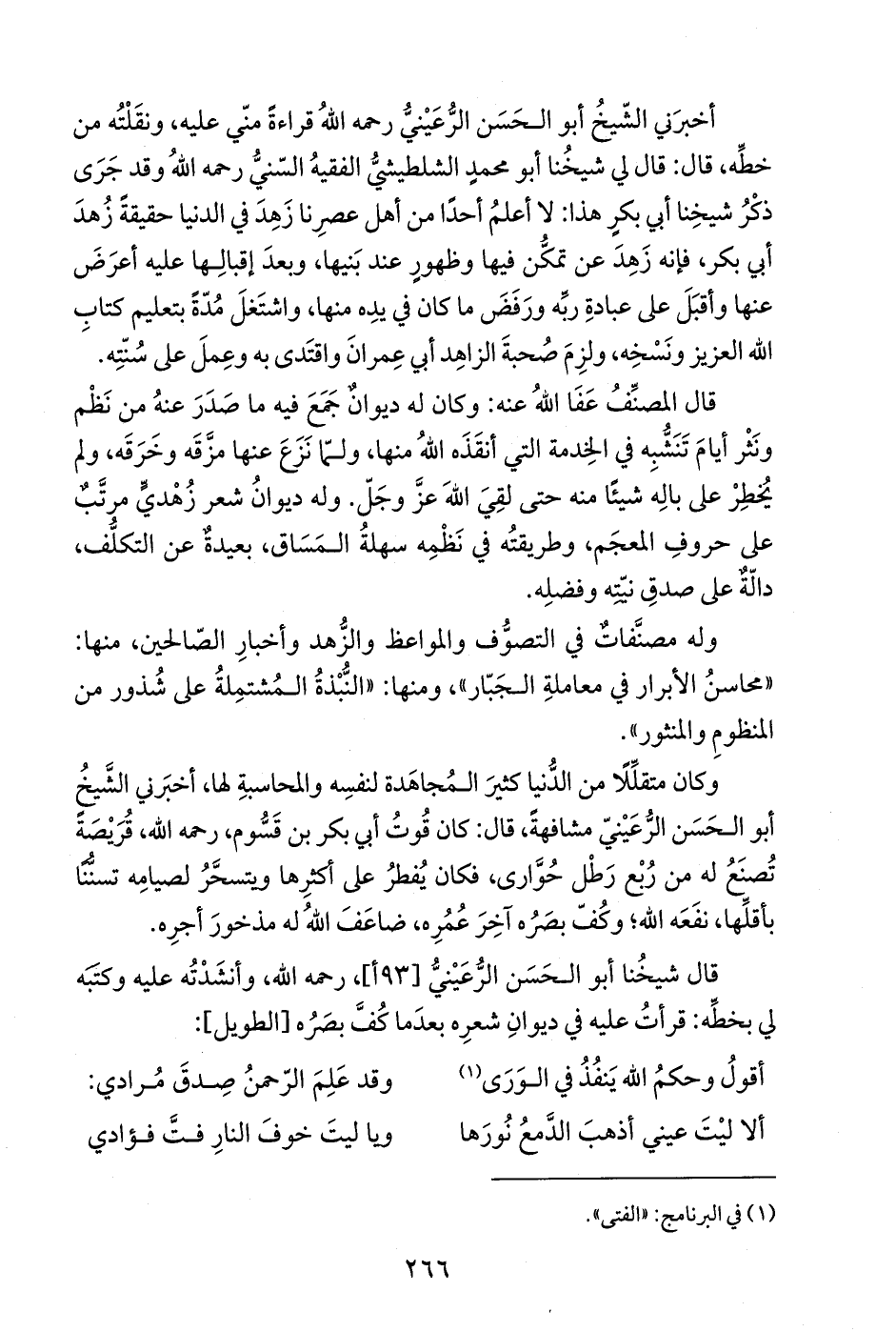 قال شيخُنا أبو الحَسَن الرُّعَيْنيُّ , رحمه الله، وأنشَدْتُه عليه وكتبَه لي بخطِّه: قرأتُ عليه في ديوانِ شعرِه بعدَ ما كُفَّ بصَرُه [الطويل]: