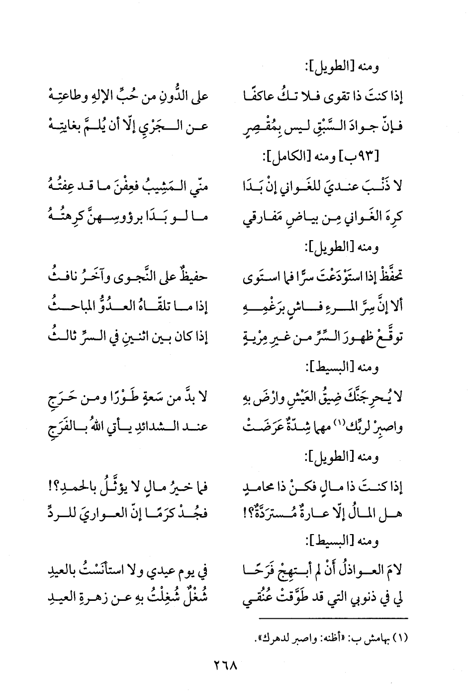 إذا كنتَ ذا تقوى فلا تكُ عاكفًا ... على الدُّونِ من حُبِّ الإلهِ وطاعتِهْ