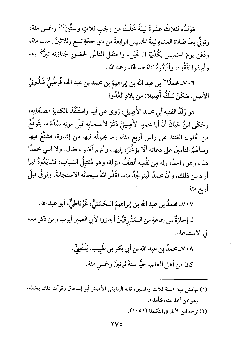 708 - محمدُ بن عبد الله بن أبي بكر بن طَبِيب، بَلَنْسِيٌّ.