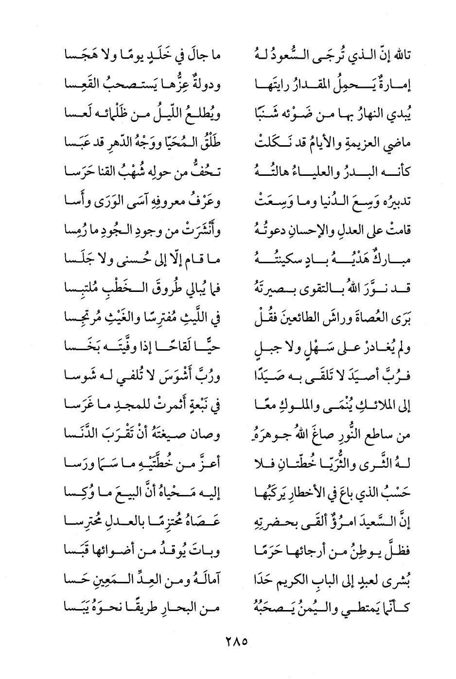 مباركٌ هَدْيُهُ بادٍ سكينتُهُ ... ما قام إلا إلى حُسنى ولا جَلَسا