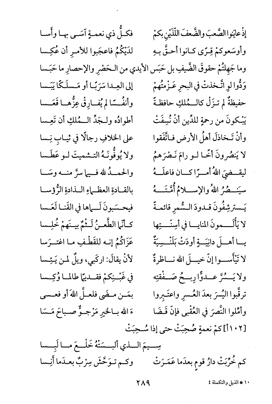 كمْ نعمةٍ صُحِبَتْ حتى إذا سُحِبَتْ ... سِيمَ الذي ألبسَتْهُ خَلْعَ ما لَبِسا