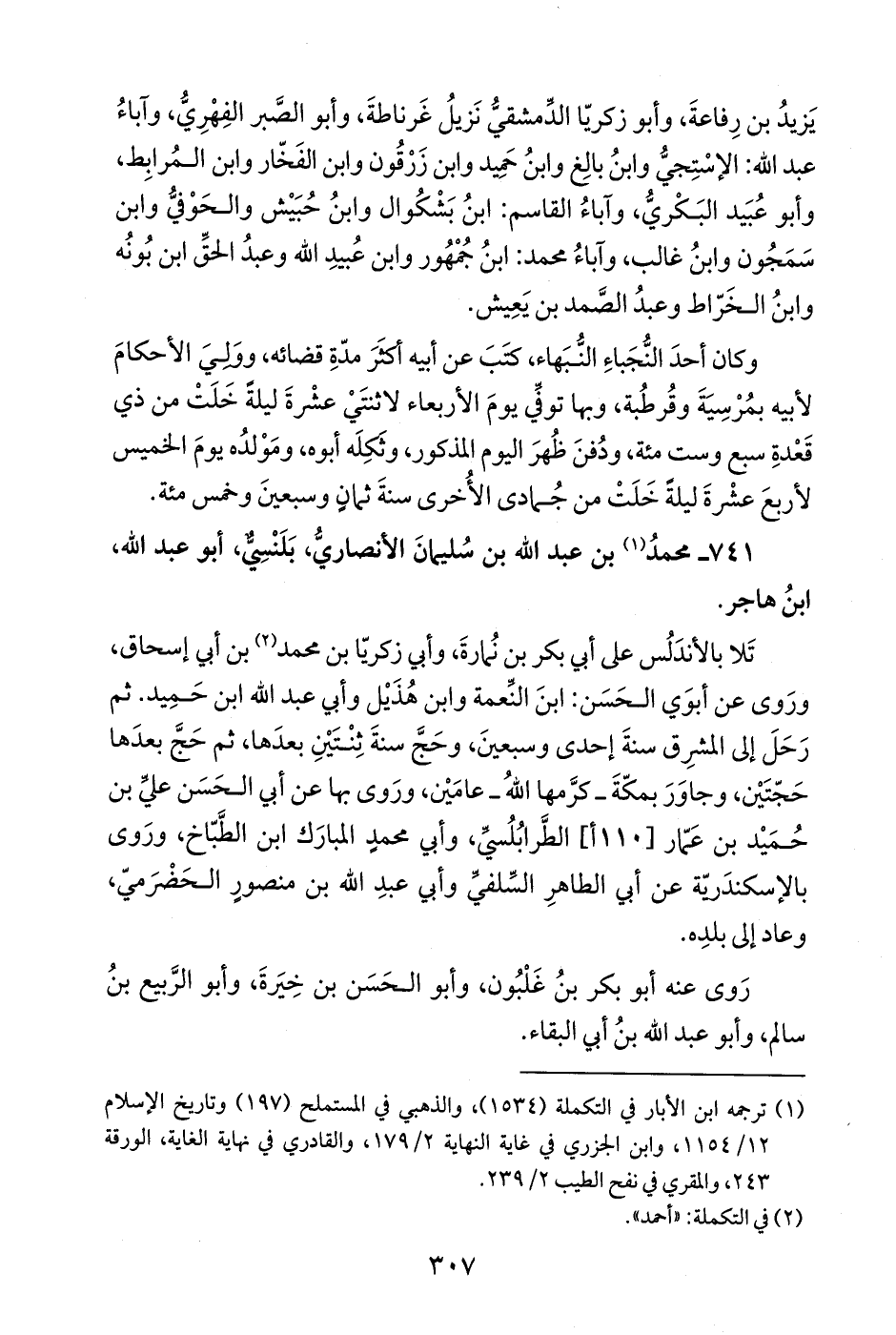 741 - محمدُ (¬1) بن عبد الله بن سُليمانَ الأنصاريُّ، بَلَنْسِيٌّ، أبو عبد الله، ابنُ هاجر.