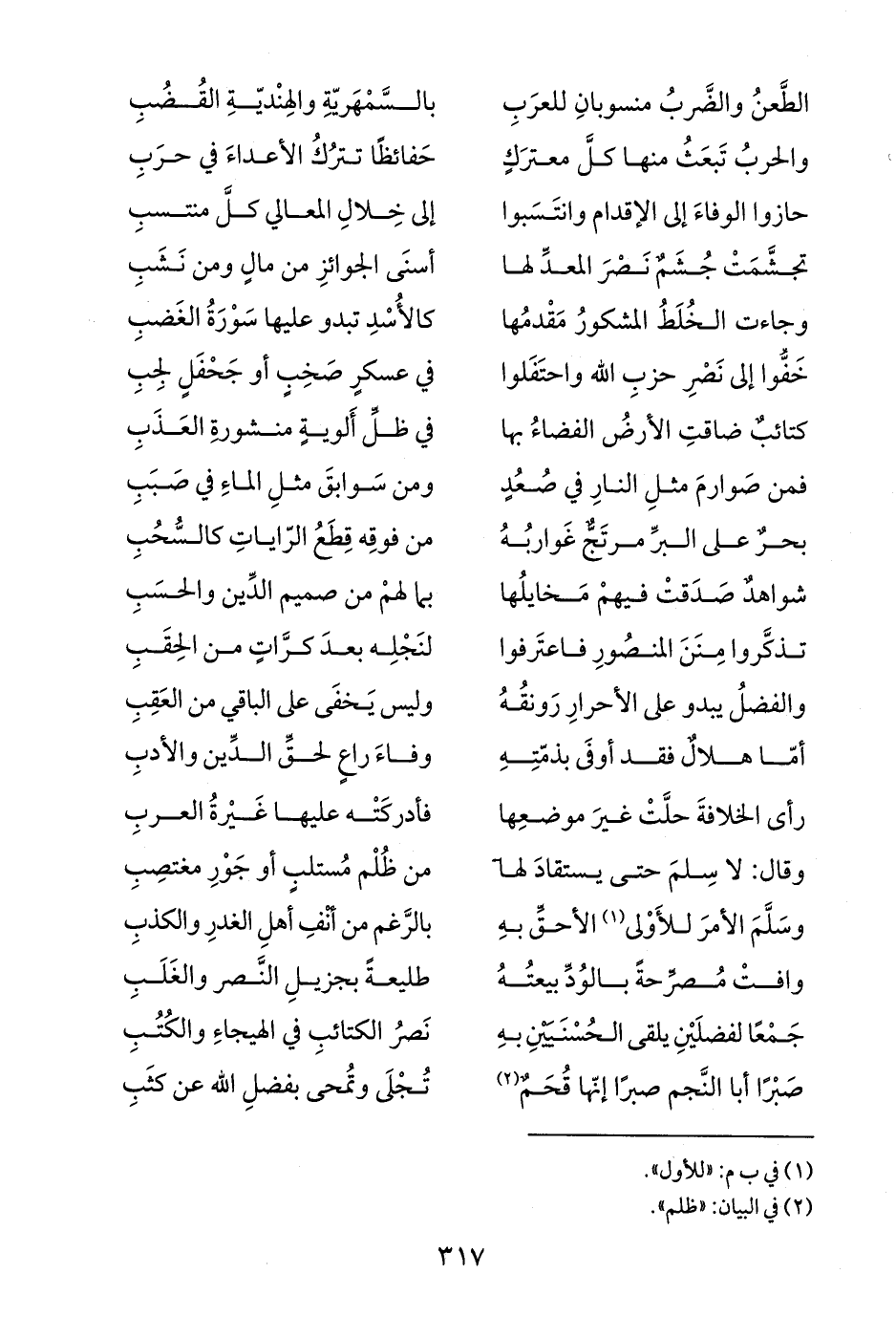 جَمْعًا لفضلَيْنِ يلقى الحُسْنَيَيْن بهِ ... نَصرُ الكتائبِ في الهيجاءِ والكُتُبِ