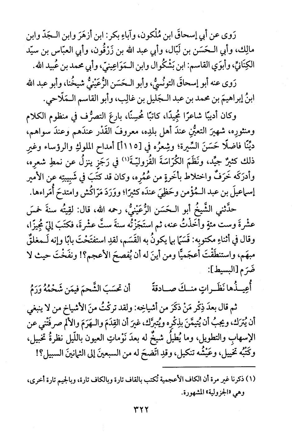 (¬1) ذكرنا غير مرة أن الكاف الأعجمية تُكتب بالقاف تارة وبالكاف تارة، وبالجيم تارة أخرى، وهي "الجزولية" المشهورة.