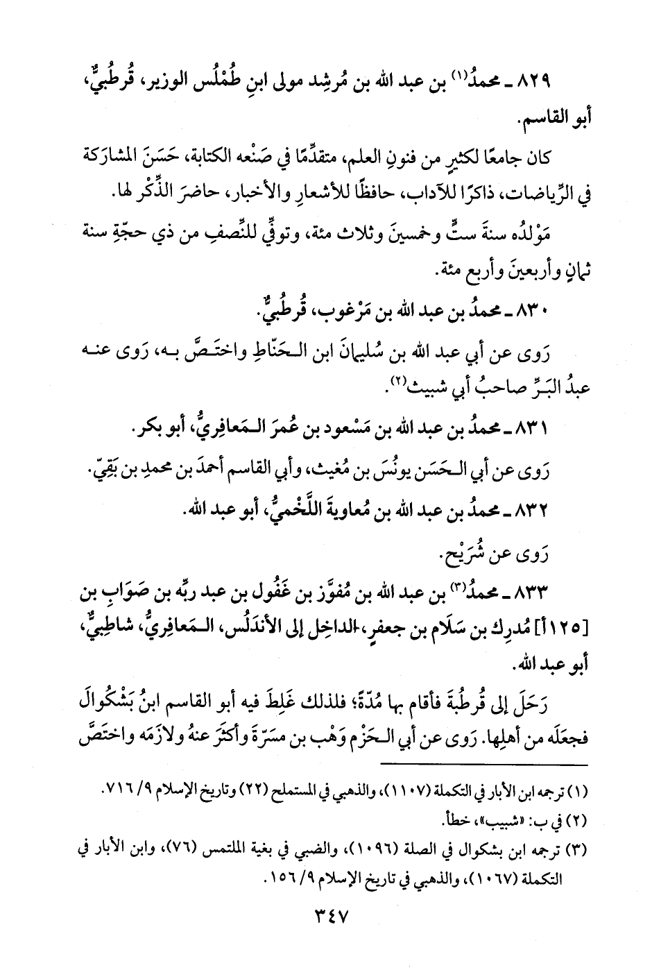 829 - محمدُ (¬1) بن عبد الله بن مُرشِد مولى ابنِ طُمْلُس الوزير، قُرطُبيٌّ، أبو القاسم.