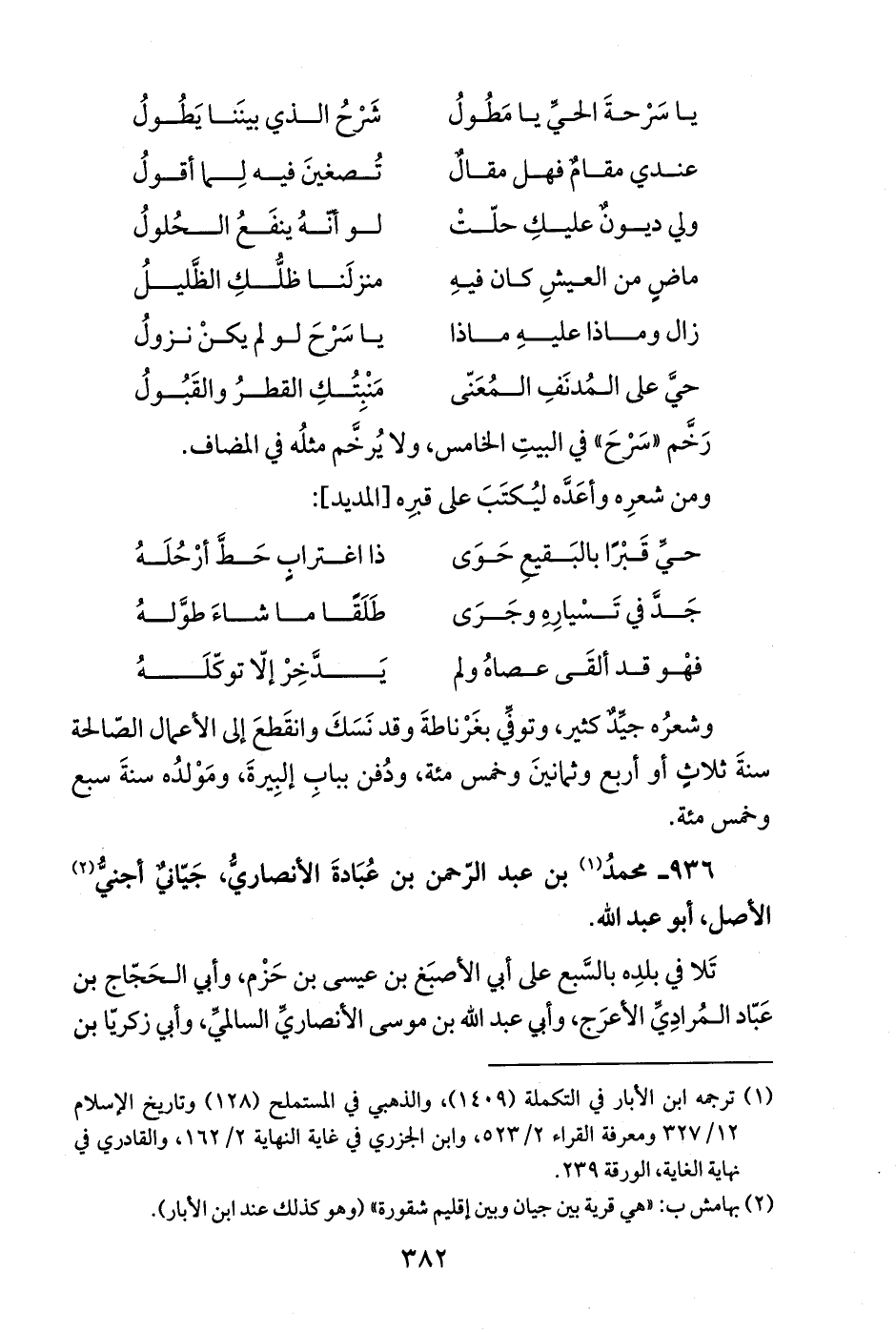 936 - محمدُ (¬1) بن عبد الرّحمن بن عُبَادةَ الأنصاريُّ، جَيّانيٌّ أجنيُّ (¬2) الأصل، أبو عبد الله.
