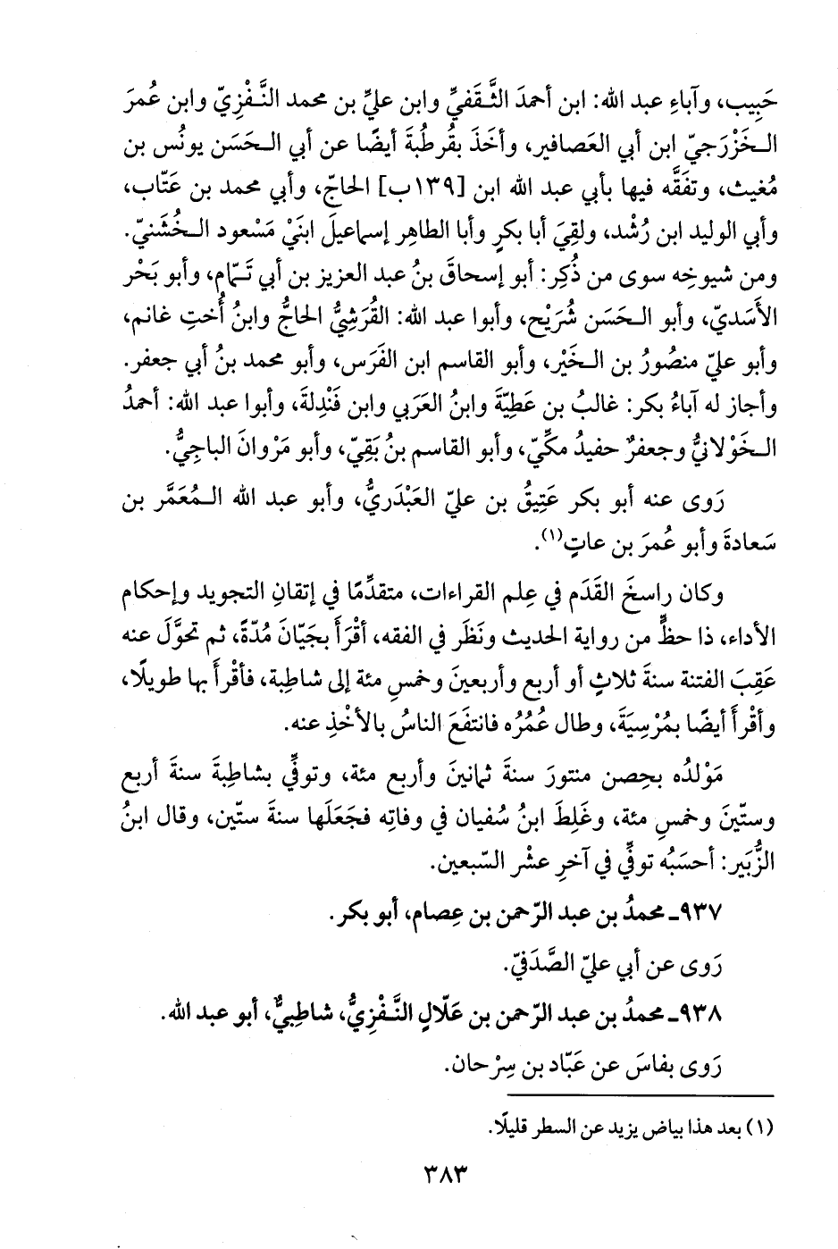 938 - محمدُ بن عبد الرّحمن بن عَلّالٍ النَّفْزِيُّ، شاطِبيٌّ، أبو عبد الله.