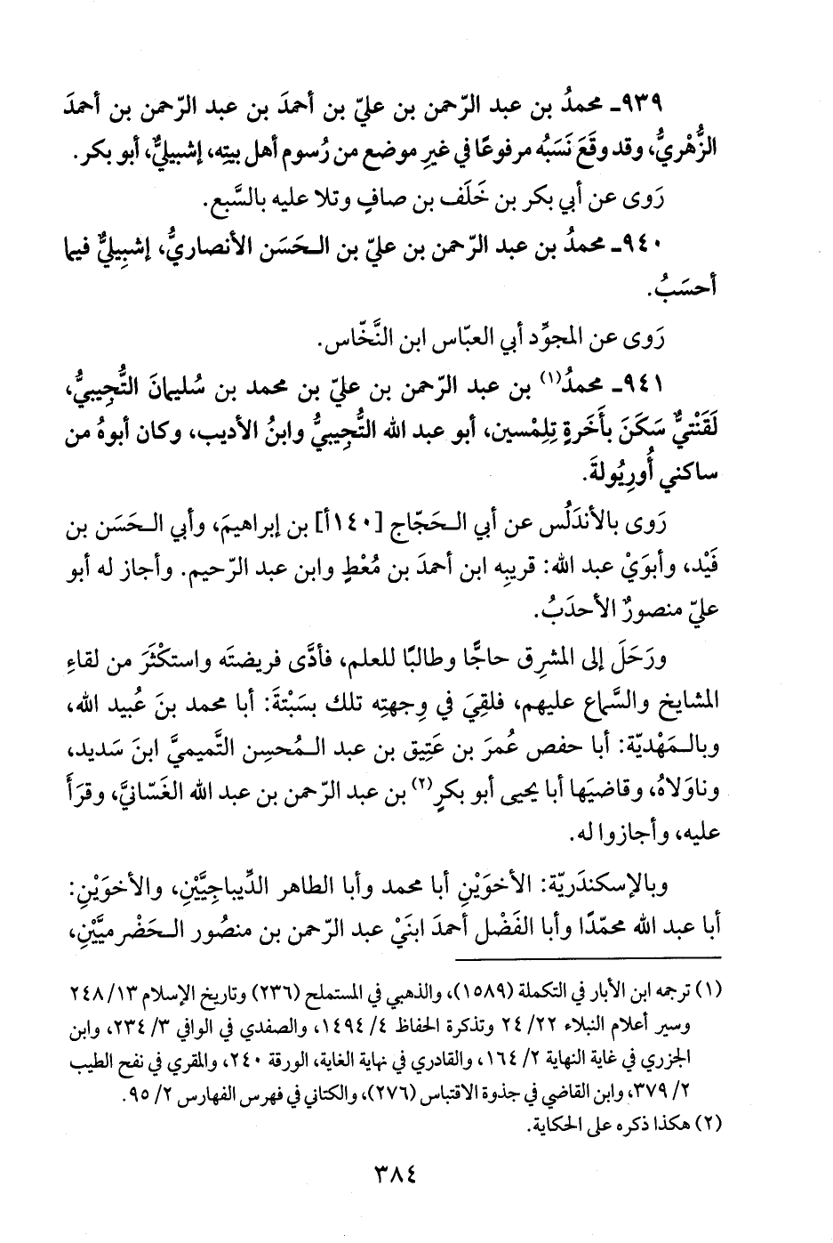 939 - محمدُ بن عبد الرّحمن بن عليّ بن أحمدَ بن عبد الرّحمن بن أحمدَ الزُّهْريُّ، وقد وقَعَ نَسَبُه مرفوعًا في غيرِ موضع من رُسوم أهل بيتِه، إشبيليٌّ، أبو بكر.